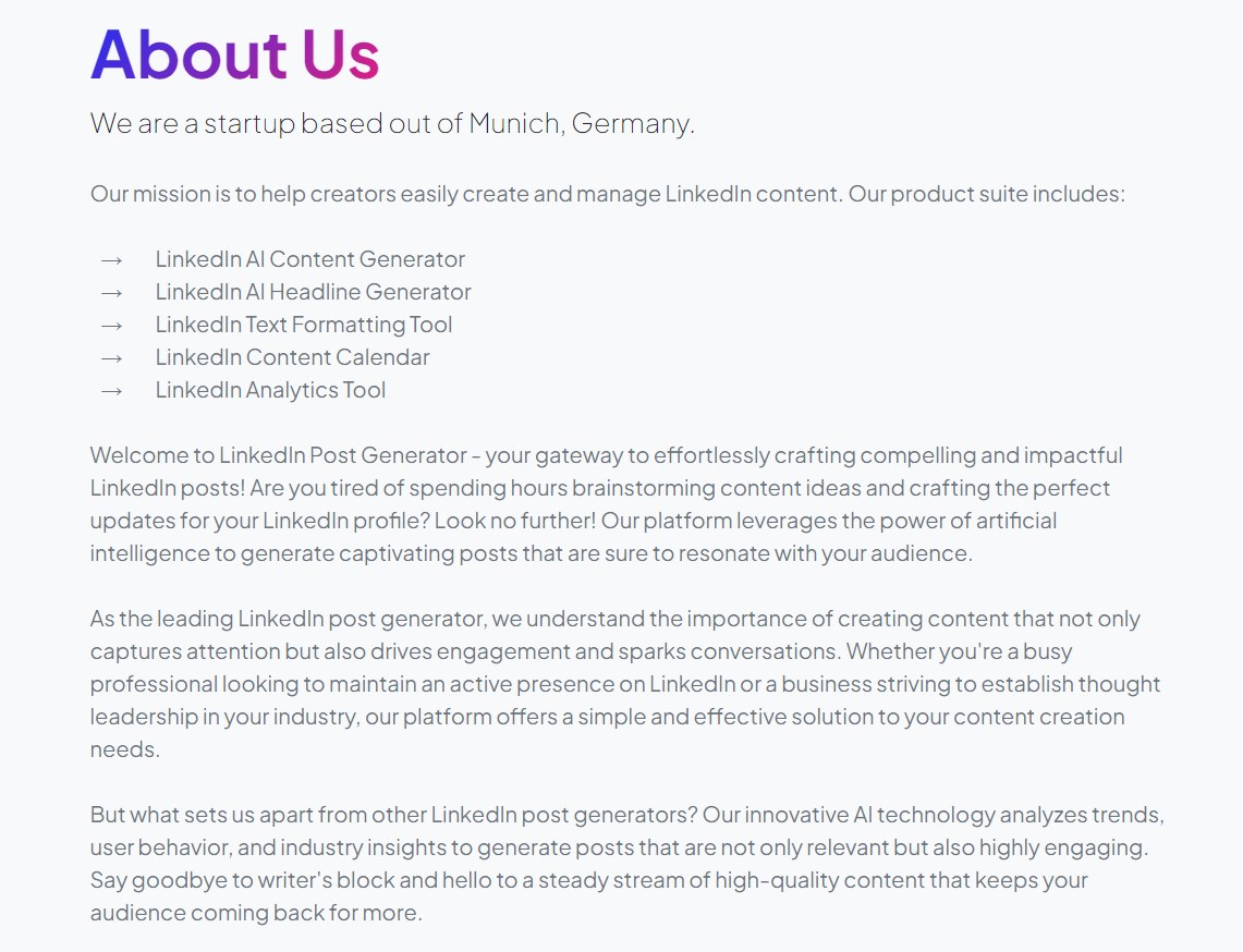 This tool assists users in crafting content that captures interest and boosts interaction on the platform for professional and business growth.